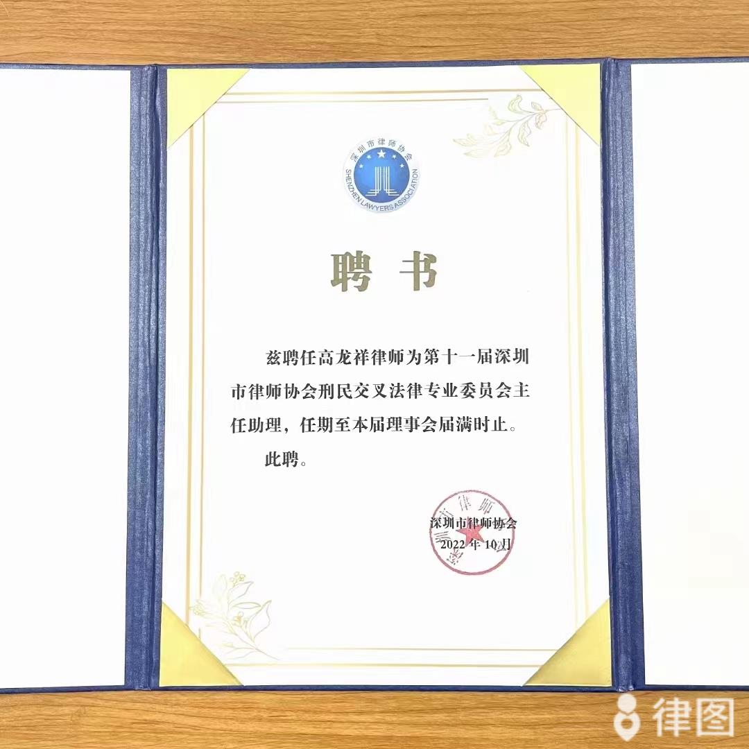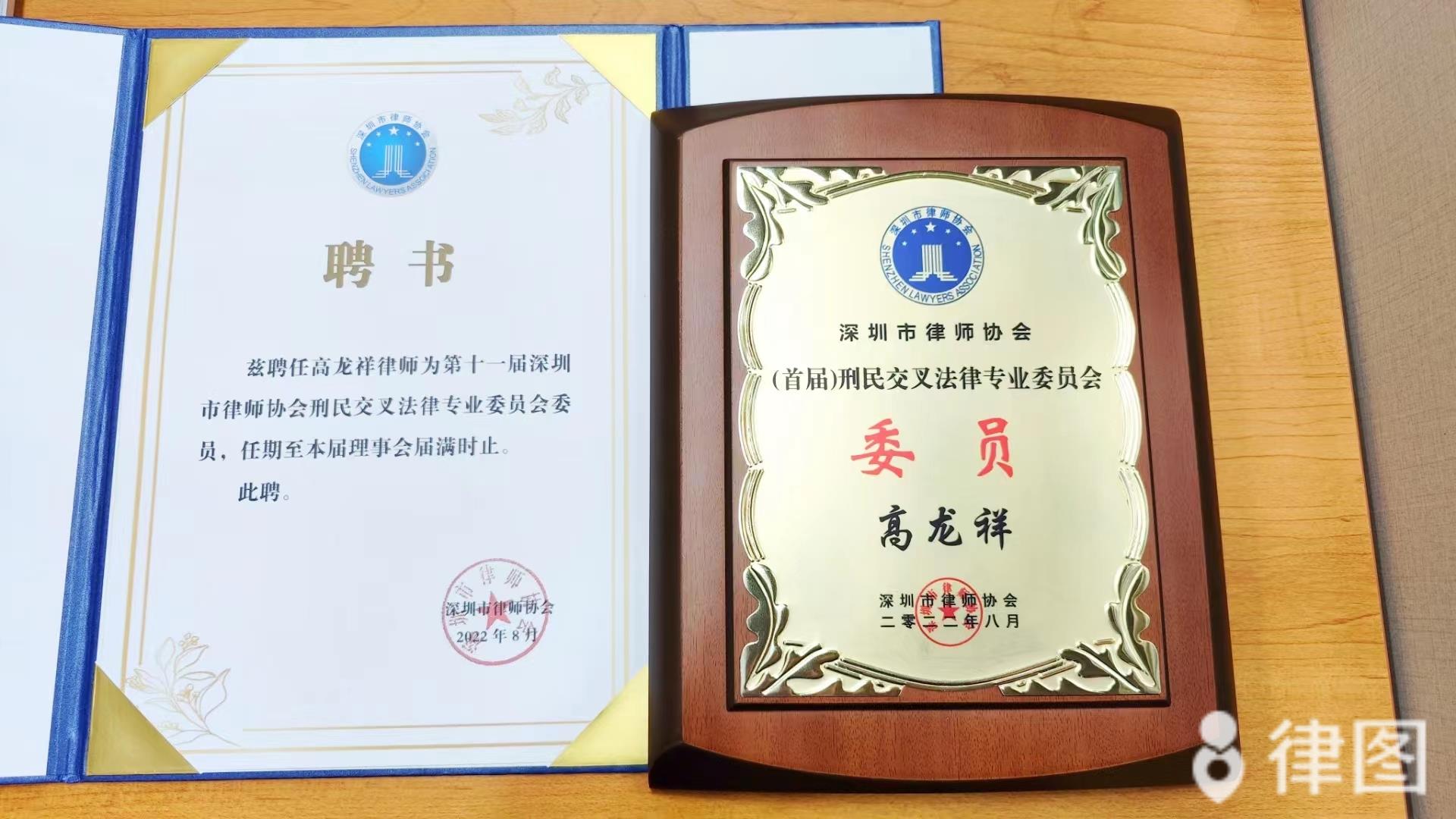 深圳市律师协会“二0二0年度刑民交叉委优秀委员”