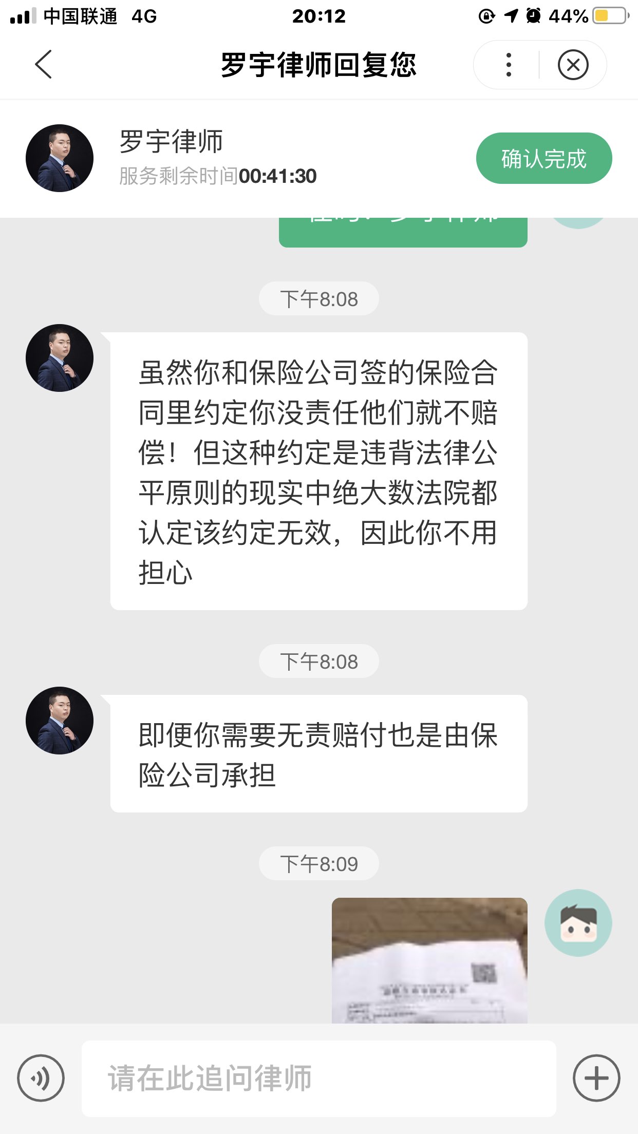 罗律师服务态度很好,就是答复有点慢,但这不影响他的态度